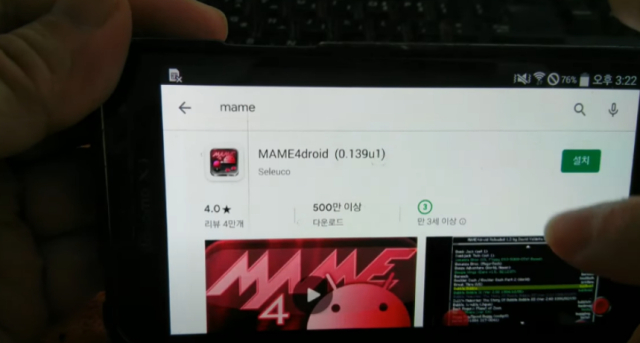 1. '구글 플레이 스토어'로 들어가서 'MAME'로 검색해서 'MAME4Droid 0.139u1' 버전 앱을 설치하자