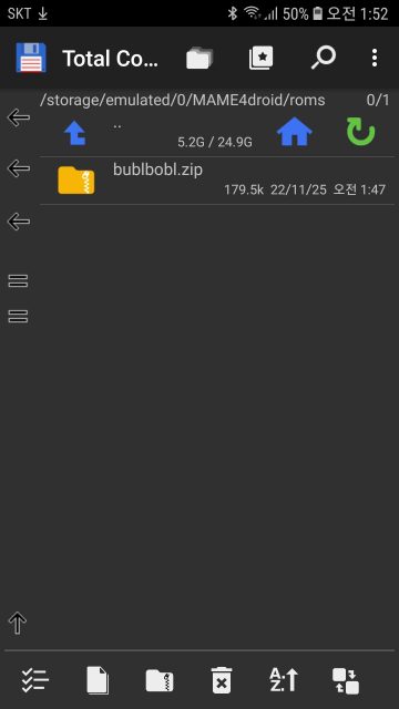 화면을 왼쪽으로 스와이프 해줘서 /storage/emulated/0/MAME4droid/roms로 받은 게임을 이동