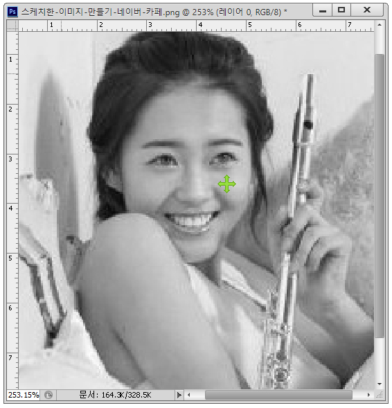 6.레이어를 합쳐주고, > 다시 레이어를 복사 > 복사된 레이어에 필터 > 노이즈 > 노이즈 추가(양을 8%)를 해준다.