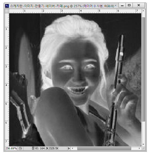 3.이미지 > 조정 > 반전(i) 을 선택해서 복사된 레이어를 반전 시켜준다.