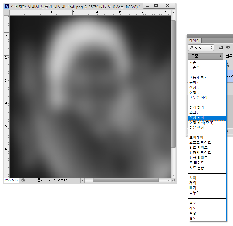 5.필터 적용후에 레이어 옵션을 '색상닷지'로 선택해주자