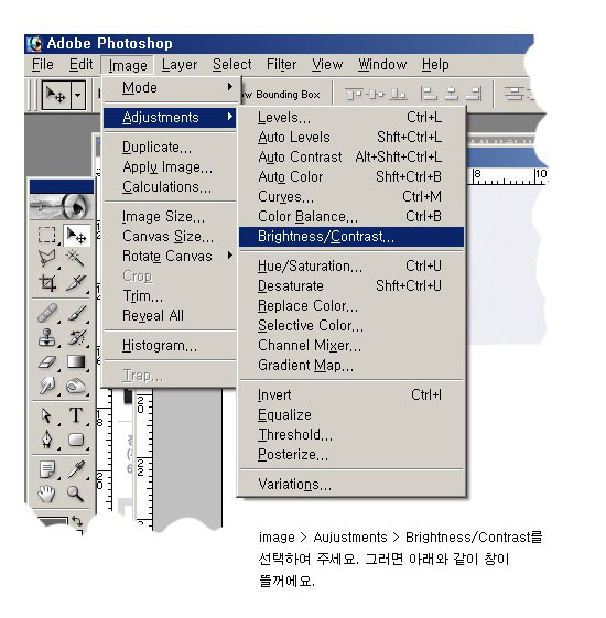 2.이미지 > 조정 > 명도/대비를 선택해준다.