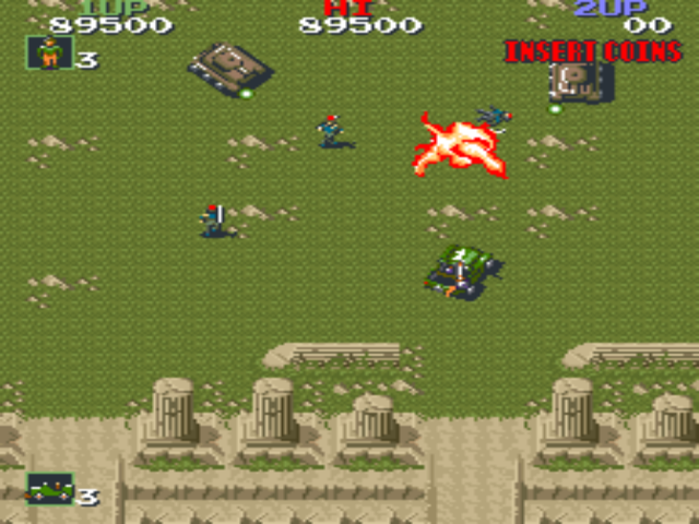 적의 기지에 들어가서 짚차로 인질을 구출하고 적을 물리치는 게임. 기본 공격은 기관총과 수류탄이 있고,