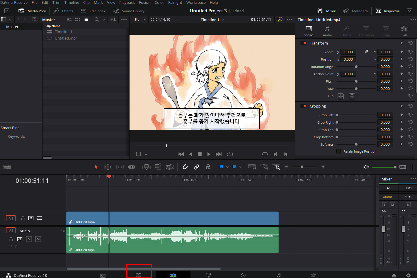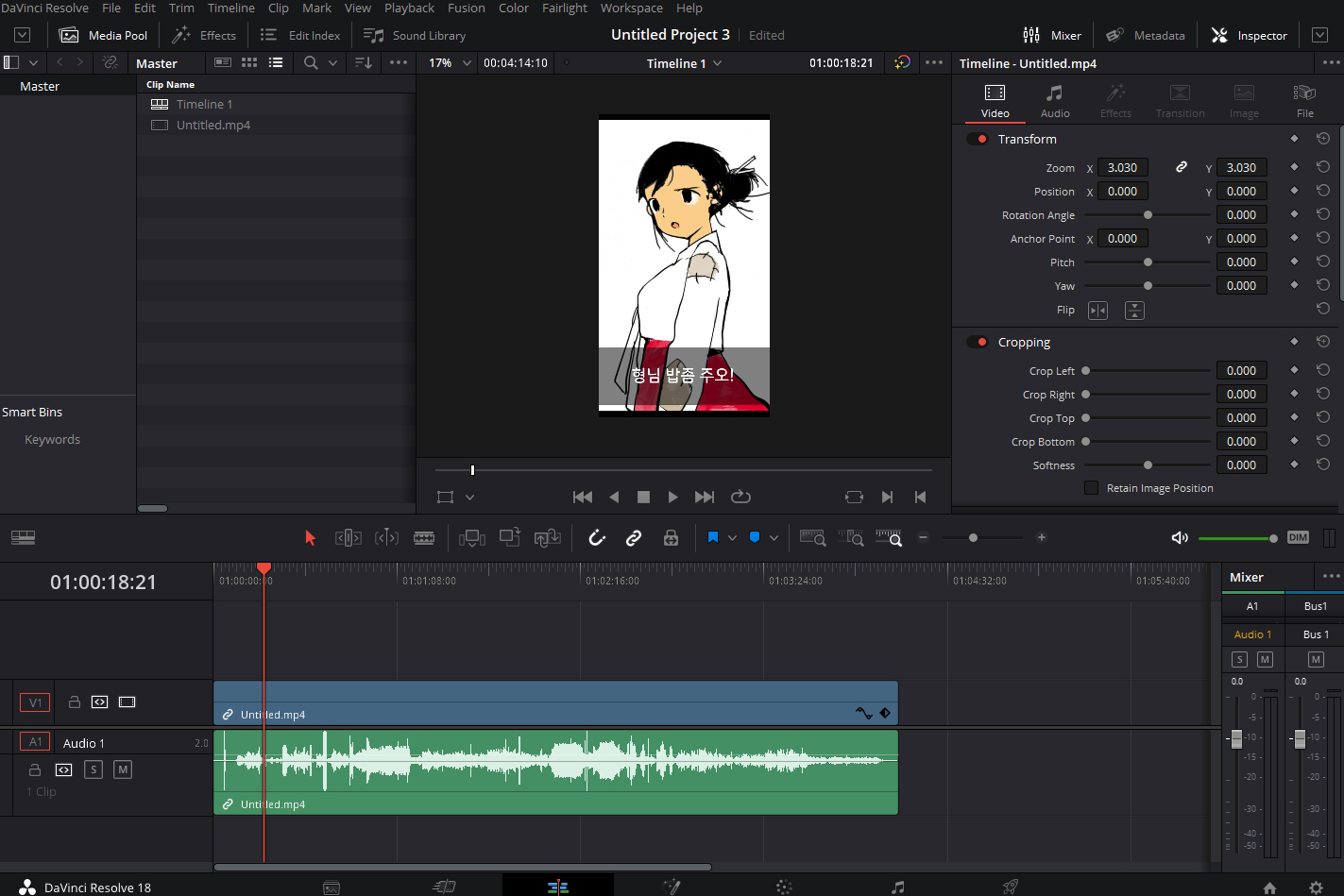 간단히 유튜브 shorts 영상 만들어 보자 (Davinci Resolve 18버전을 사용)