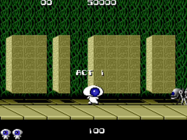 눈에서 버블이 나가는 뮤트론(Mutron-kun)이라는 생명체를 플레이 할 수 있다. 오락실에서는