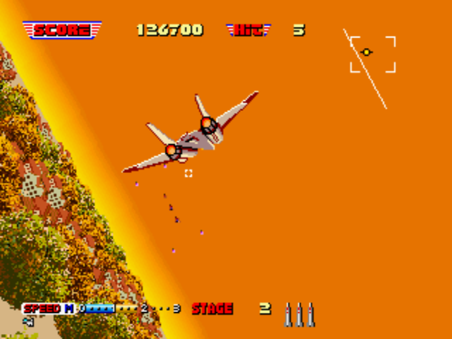 '플레이어는 A국 해군의 최신예 전투기 F-14XX를 몰아 적의 포위망을 돌파해나가야 한다' 라는 내용.