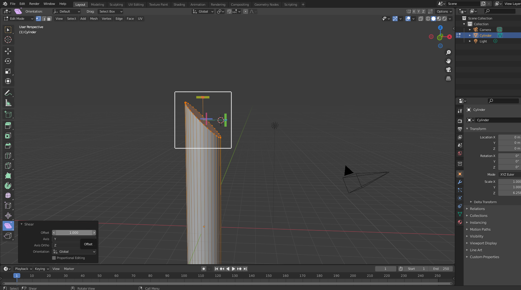 1.실린더엣지 선택 > 메뉴바 shear > 비틀어줄때 offset값 1