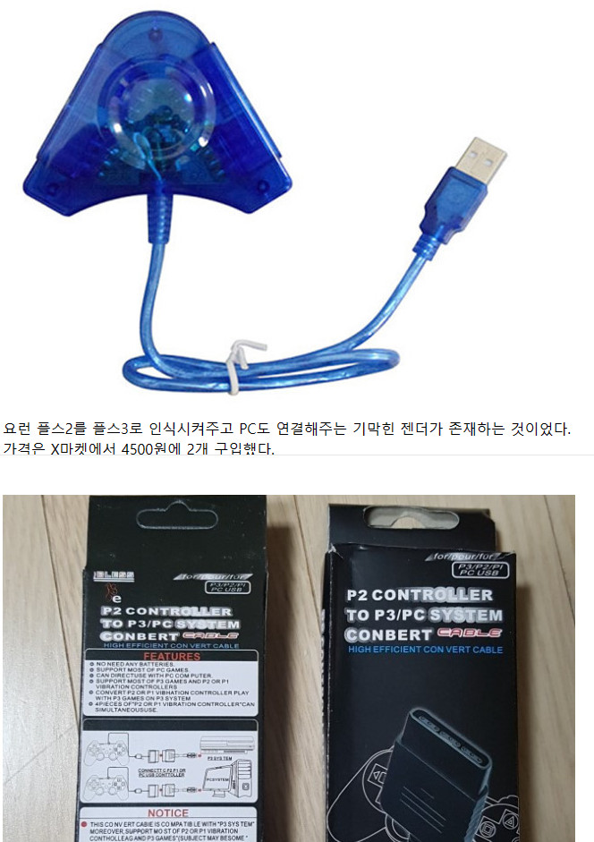 듀얼쇼크2 윈도우10 연결을 위해서는 아래와 같은 듀얼 젠더가 있으면안된다. 내가 이 듀얼 젠더를 이용해...