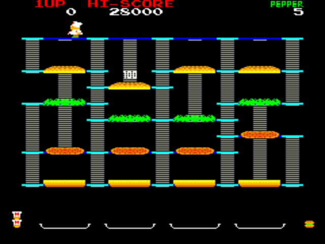 게임방식은 간단하게 요리사 피터페퍼를 조작해서 햄버거의 재료를 낙하시켜 햄버거를 완성하면 되는 내용