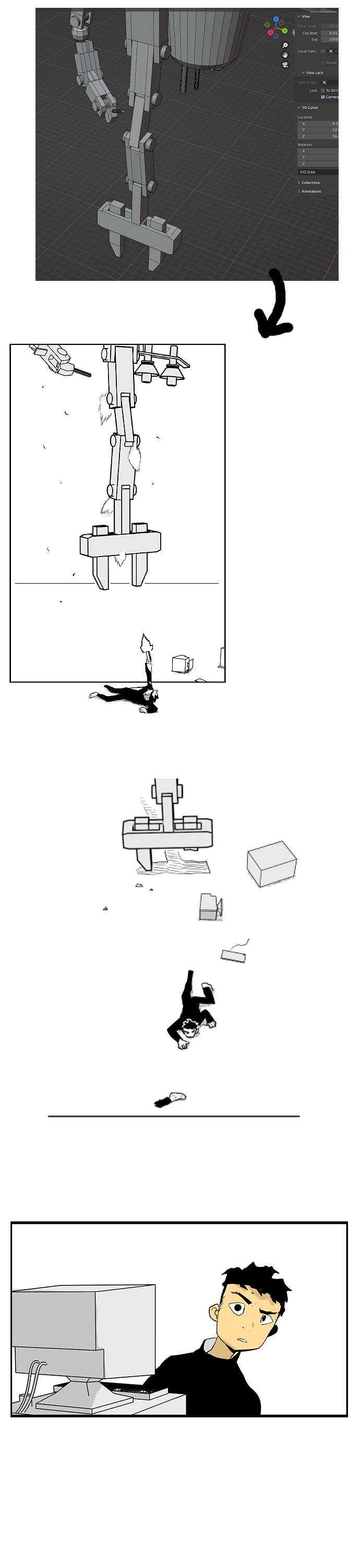먼 미래가 배경이기 때문에 기계에 관련된 배경을 3d로 하나씩 만드는게 시간이 많이 걸려서