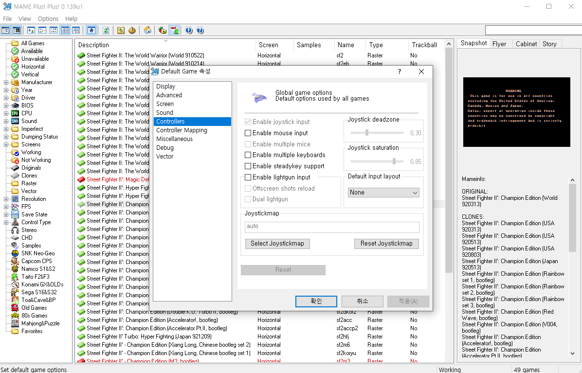 MAME기준으로 게임옵션에 들어가서 컨트롤러 항목을 체크 해주면 사용 가능.
