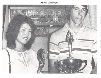 1981년 아타리 세계 선수권대회 최종 라운드 남자챔피언 에릭 지너(Eric Ginner), 여자 챔피언 한옥수(Ok-Soo Han)