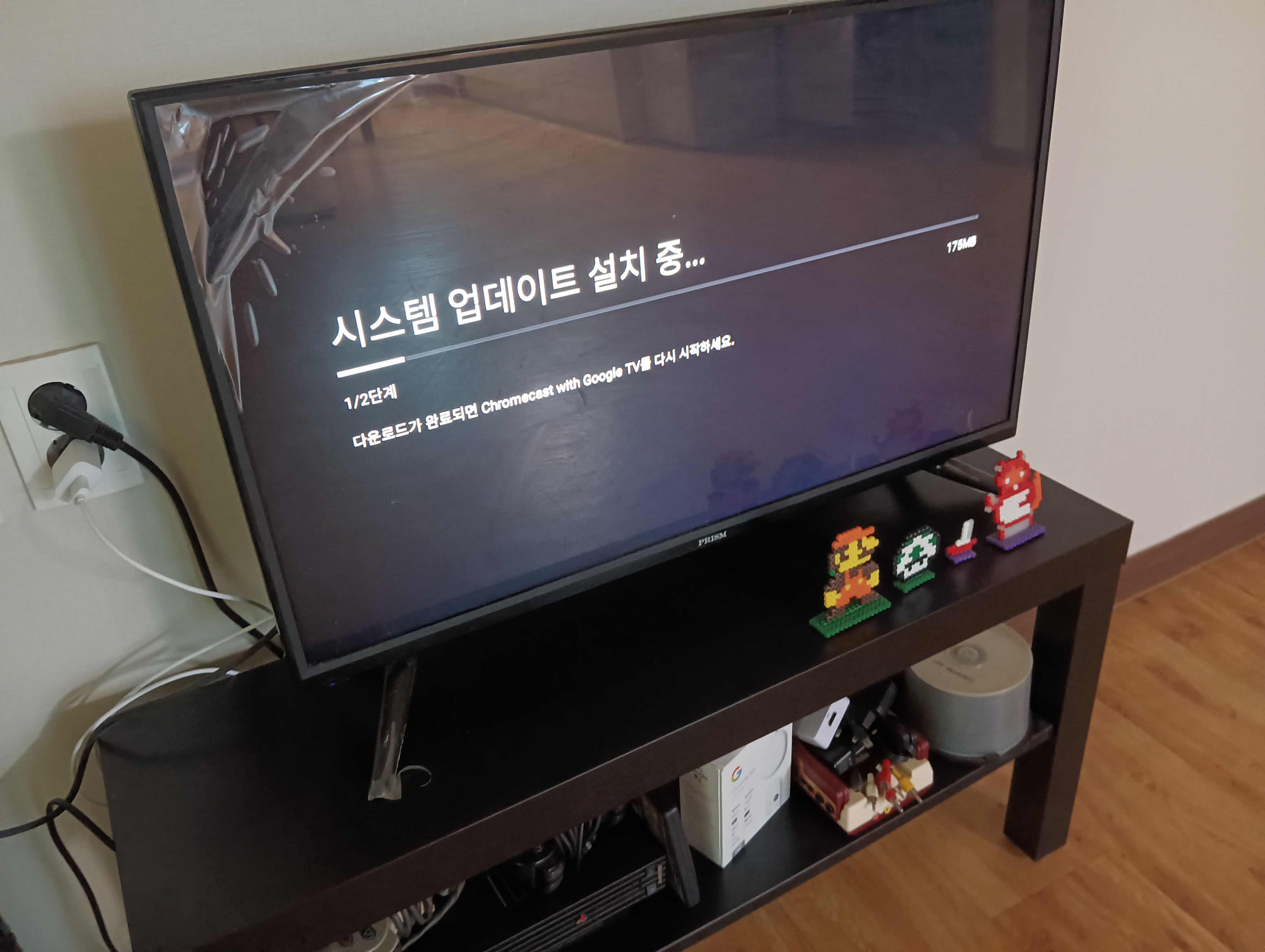 tv뒤 hdmi포트에 꽂아두고 동봉된 리모컨으로 전원으 킨후에 tv입력을 hdmi로 바꿔주면 된다.