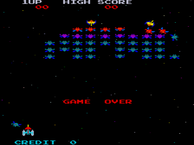 포스트 인베이더를 목표로 개발되었고, 첫 스프라이트 개념을 사용하여 1978년에 발매된 인베이더에 비해서 역시나 확연한 시각차를 보여줌으로써 일본에서는 슈팅게임의 기초를 놓았다.